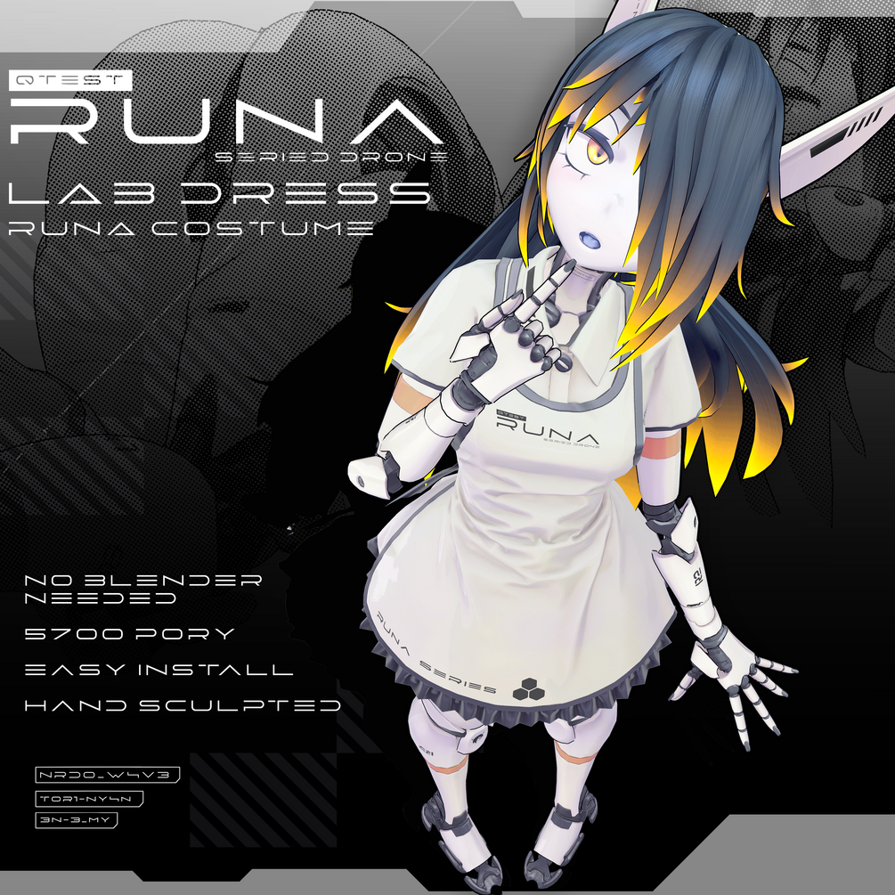 Please also credit nradiowave for the design/concept art of Runa. - You may use this model personally, no public uploads to avatar pedestals (as no data on public pedestals is secure), please don't upload to your friend's accounts, you are buying a single license.