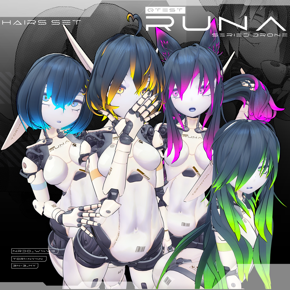In the facilities all Runa's looked the same, but in the human society everyones hair was very different. She got a little jealous of everyone being unique and decided to find her own style. Maybe you can help her choose?~